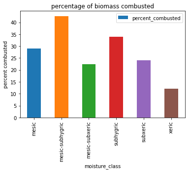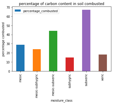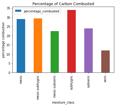 No inference can be made from above graph as the corbon combusted is same for all moisture class except xeric class which have a low combustion percentage.
